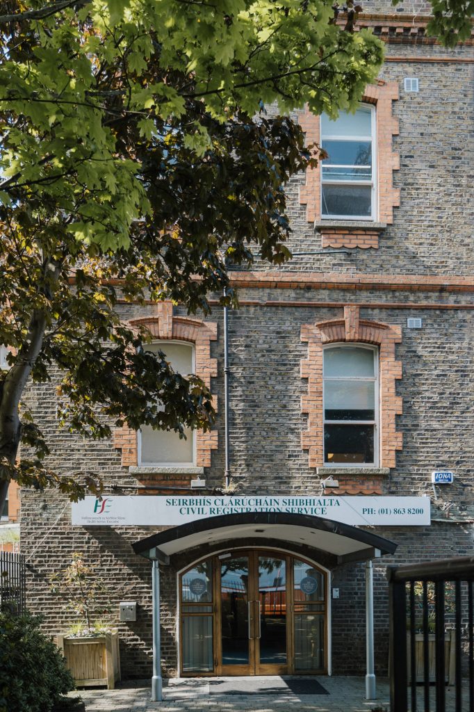 At your appointment you’ll also give the registrar the date of your wedding ceremony and the names and dates of birth of your witnesses. Legally you have to give at least 3 months’ notice. However, Dublin registry office is incredibly busy so it’s a good idea to schedule your appointment at least 6 months prior to your intended wedding date.
