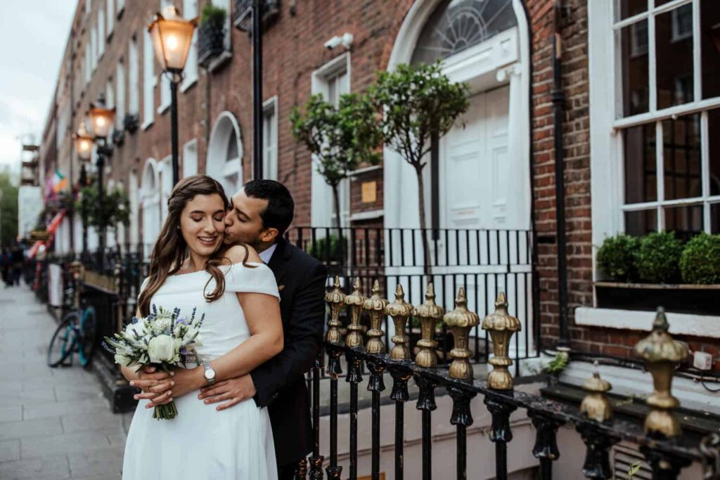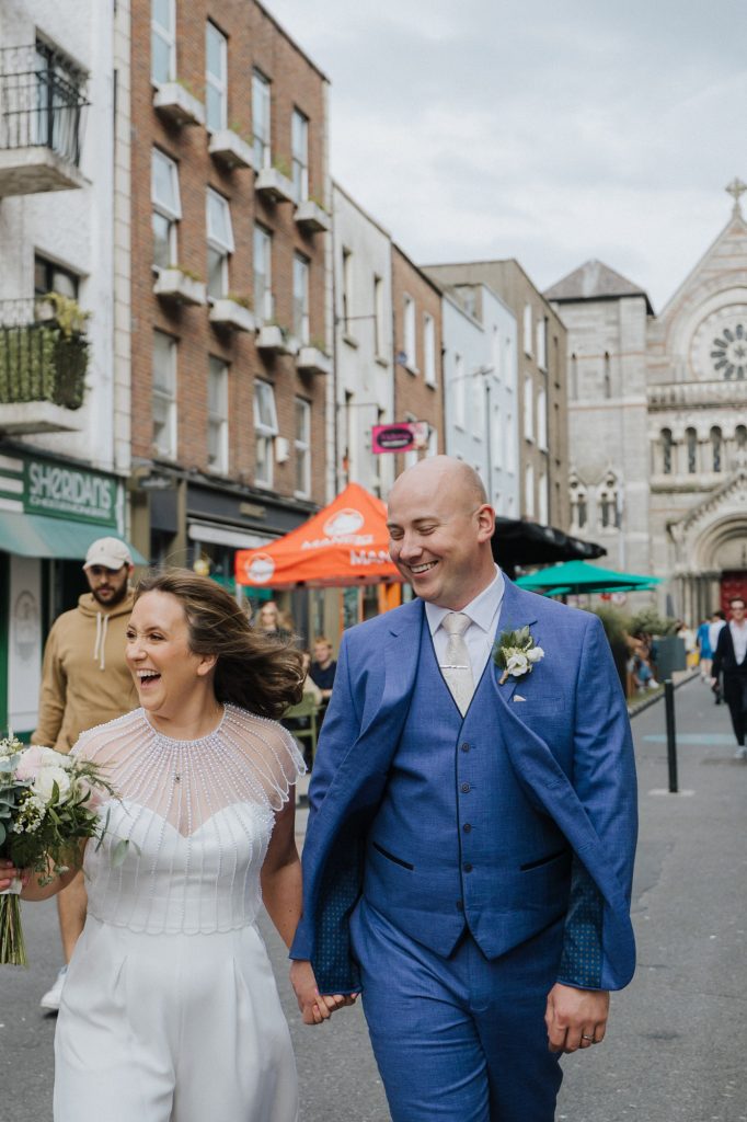 Belen and Abel both come from Argentina but after a long-distance relationship they made Dublin their home. They wanted to celebrate their marriage in the city that helped them build a life together. After an intimate registry office ceremony we went to take a few photos at Iveagh Gardens just a short drive away. Belen and Abel made a lunch reservation at Fallon & Byrne. Their after-party was at a private room at the Oak pub on Parliament Street. With small numbers it’s very easy to find private spaces at Dublin restaurant and pubs, and the city streets offer a great backdrop for urban wedding photos.