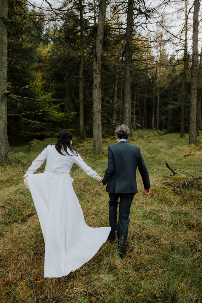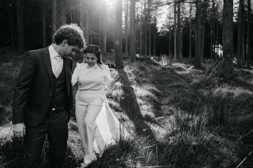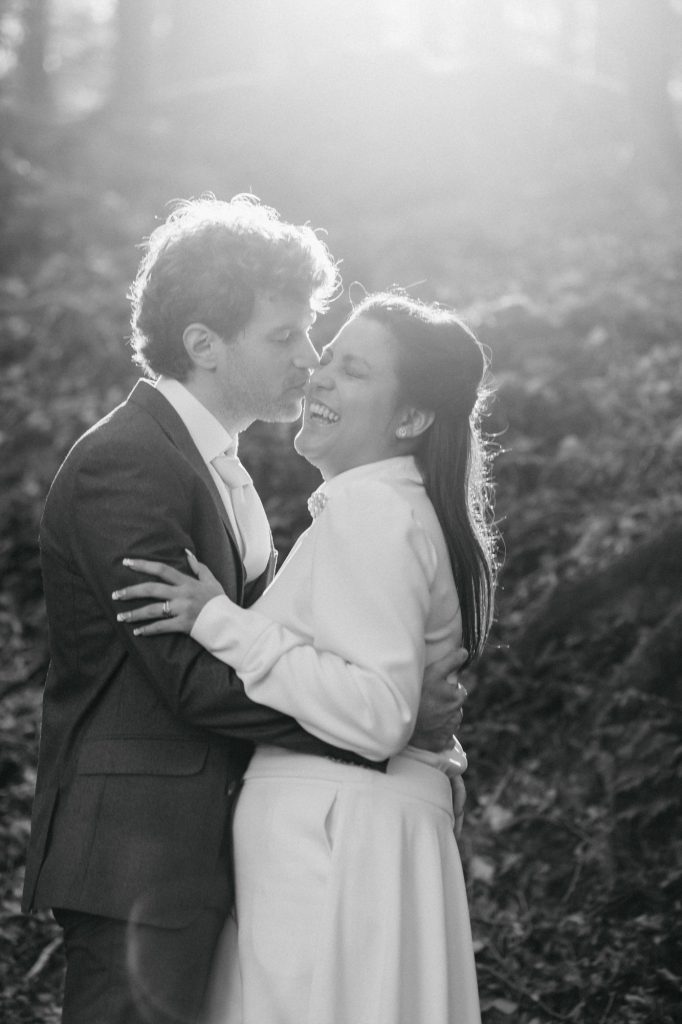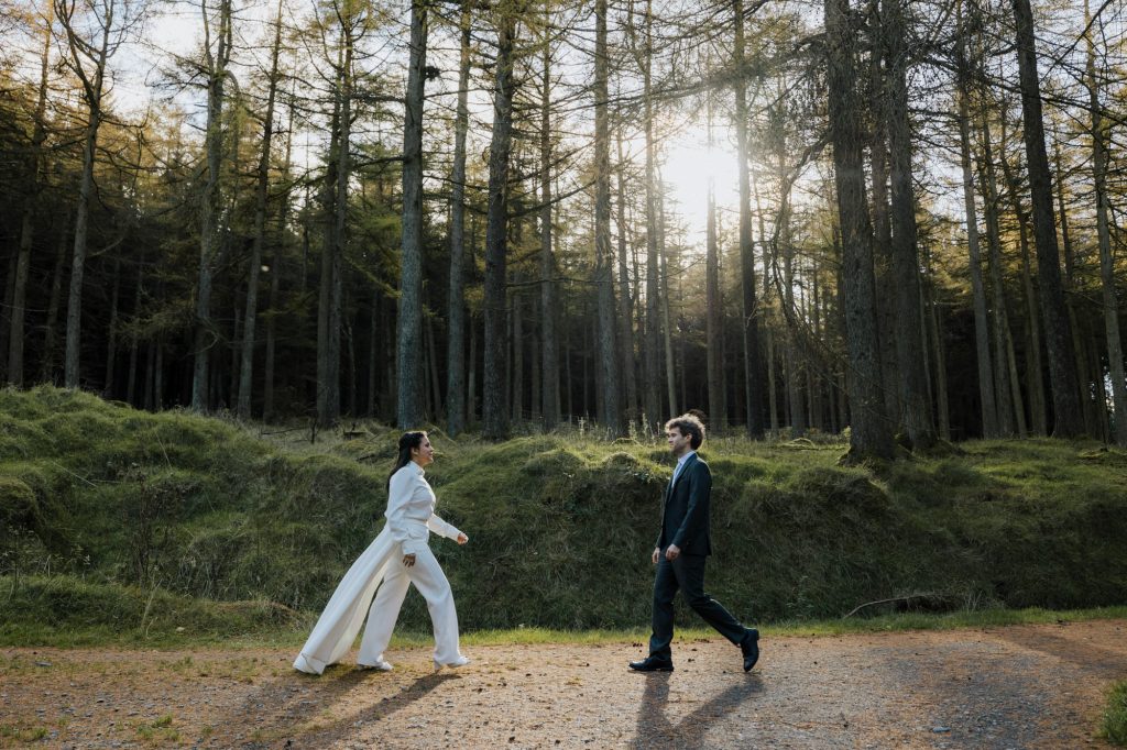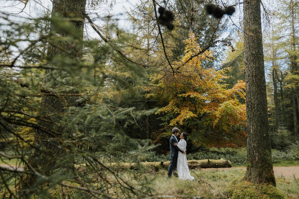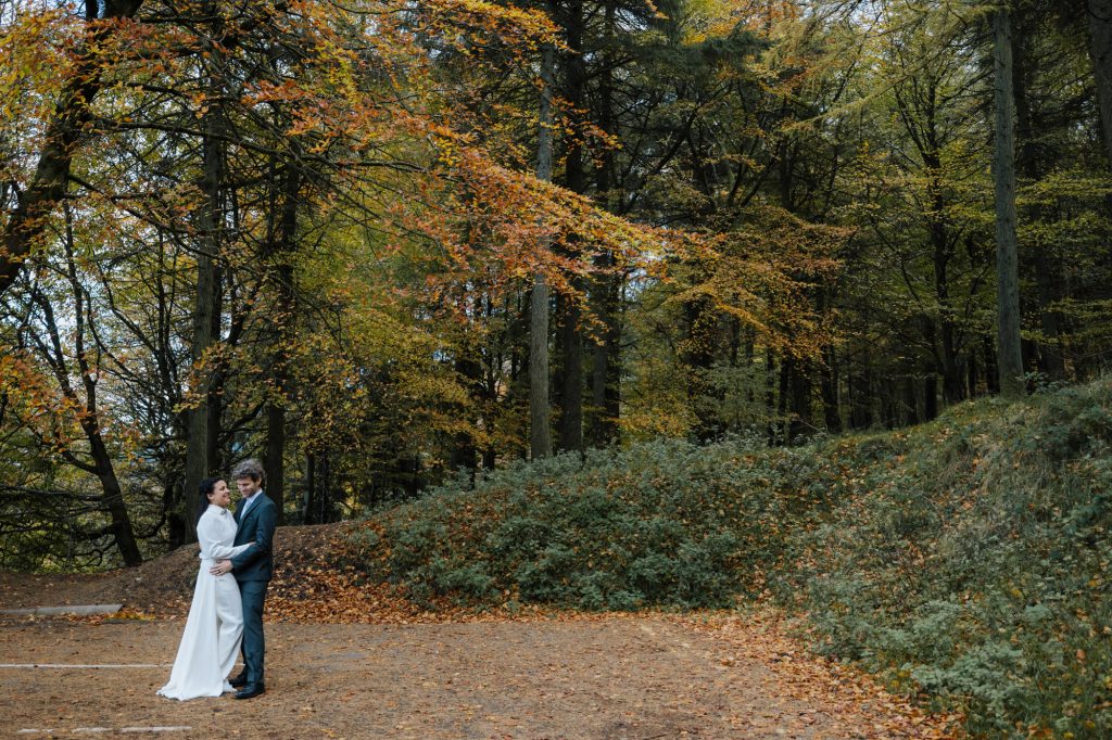 After the ceremony, we headed to the Dublin Mountains for some breathtaking autumnal photos in the forest. As avid hikers who spend their weekends exploring Ireland’s stunning nature, Valentine and Dominic wanted their photos to reflect what they love most about their adopted home. It was the perfect way to celebrate their shared journey and their love for the wild beauty of Ireland.
