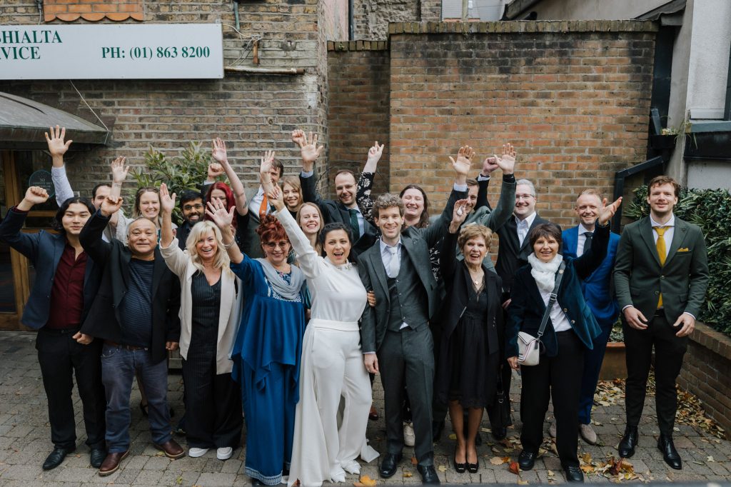 Valentine and Dominic’s wedding was a beautiful celebration of love that crossed borders and brought everyone together. After meeting through work while living in different countries, they reconnected in LA and navigated a long-distance relationship before finally building a home together in Ireland. Their Dublin Registry Office wedding was truly international, with family and friends flying in from all over the world—the only Irish person there was the registrar!