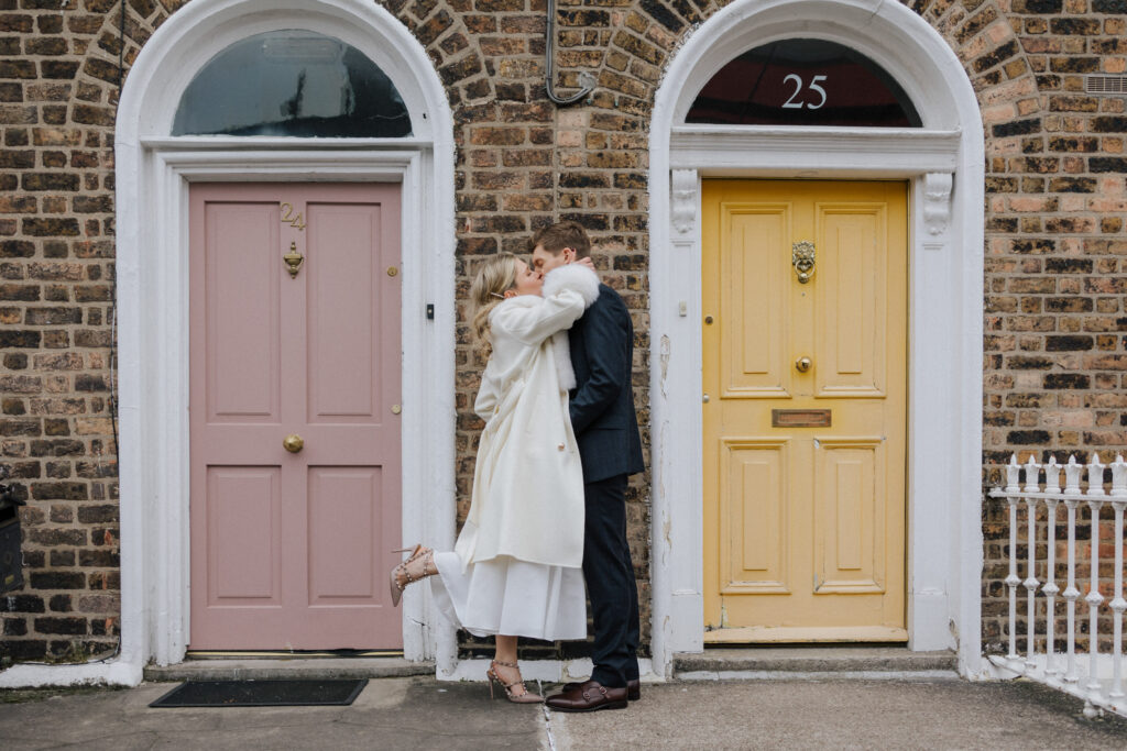 Dublin Registry Office is located right in between Grand Canal Dock and Dublin City Centre. There aren’t that many spots right on its doorstep but within a 10-min walk you can find a lot of beautiful locations. We usually start by taking a few photos with your family and witnesses right outside of the Registry Office. Then your guests can make their way to your reception venue while you can enjoy a bit of privacy and a walk around town.