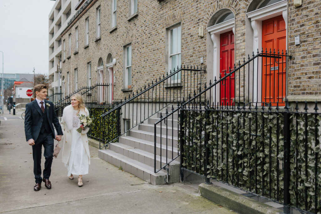 Dublin Registry Office is located quite centrally, a short walk from the Grand Canal Dock, right next to Sir Patrick Dun’s Hospital. Unfortunately, there’s not much on-street parking around. You might be lucky to get an on-street parking spot in Albert Court just around the corner. Most couples come in a taxi, and the closest car park is Q-Park by the Grand Canal Square. If you’re feeling adventurous you can also get there by the DART! The station is less than 10 minutes away, and it could be an opportunity for some really cool wedding photos.