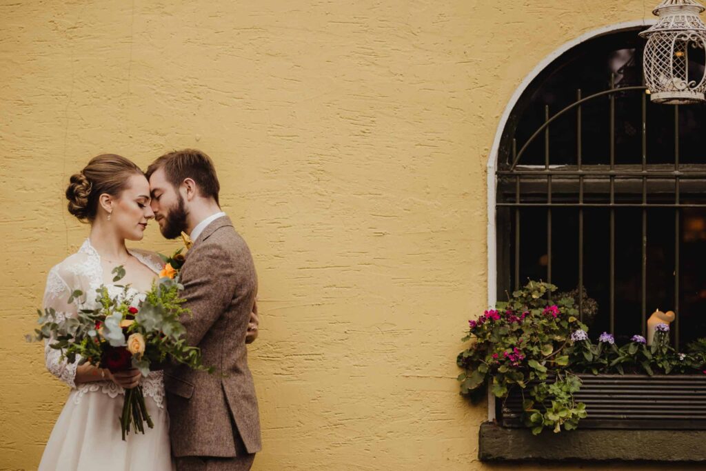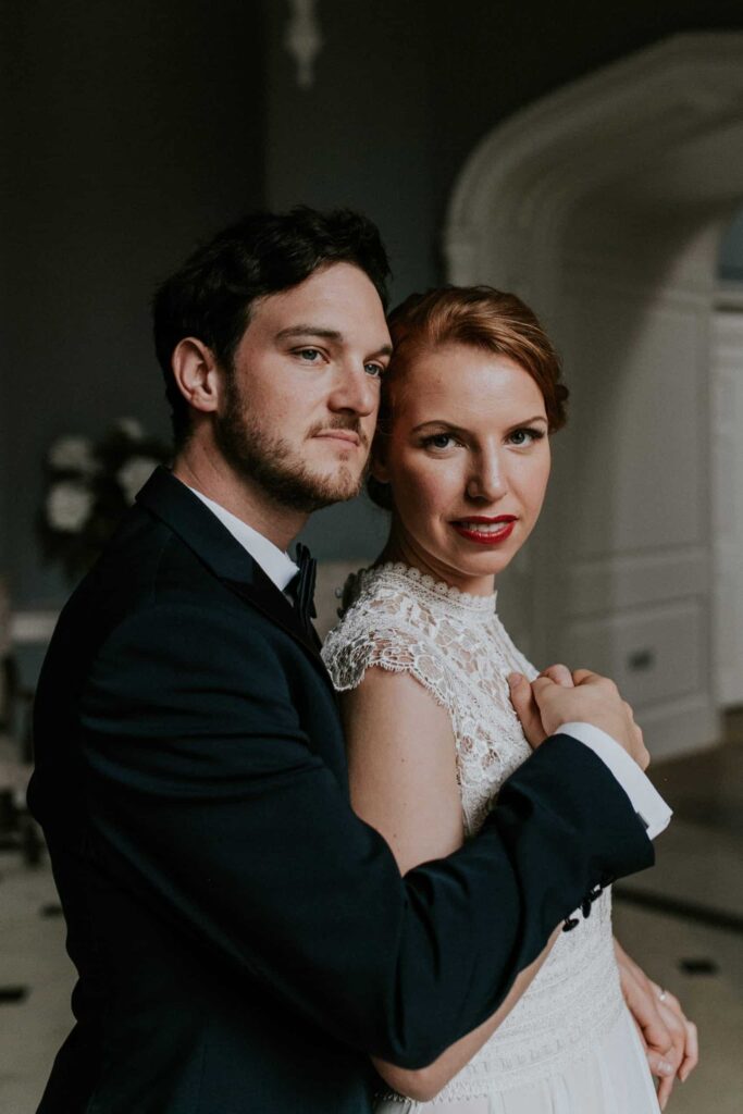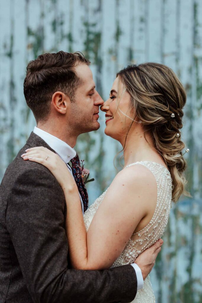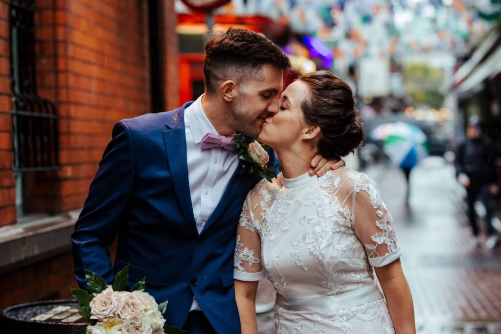 Aoife, on the other hand, picked a dress with a higher neckline for her winter wedding. The style, combined with the fact that it was a wet and stormy day, meant that she went for a tight updo decorated with her favourite flowers. Aoife’s hair stayed in perfect shape for the whole day, even though we’d spent over an hour walking the streets of Dublin in the middle of a storm!