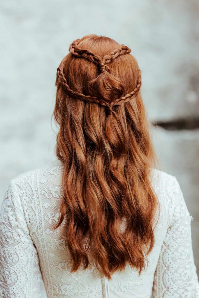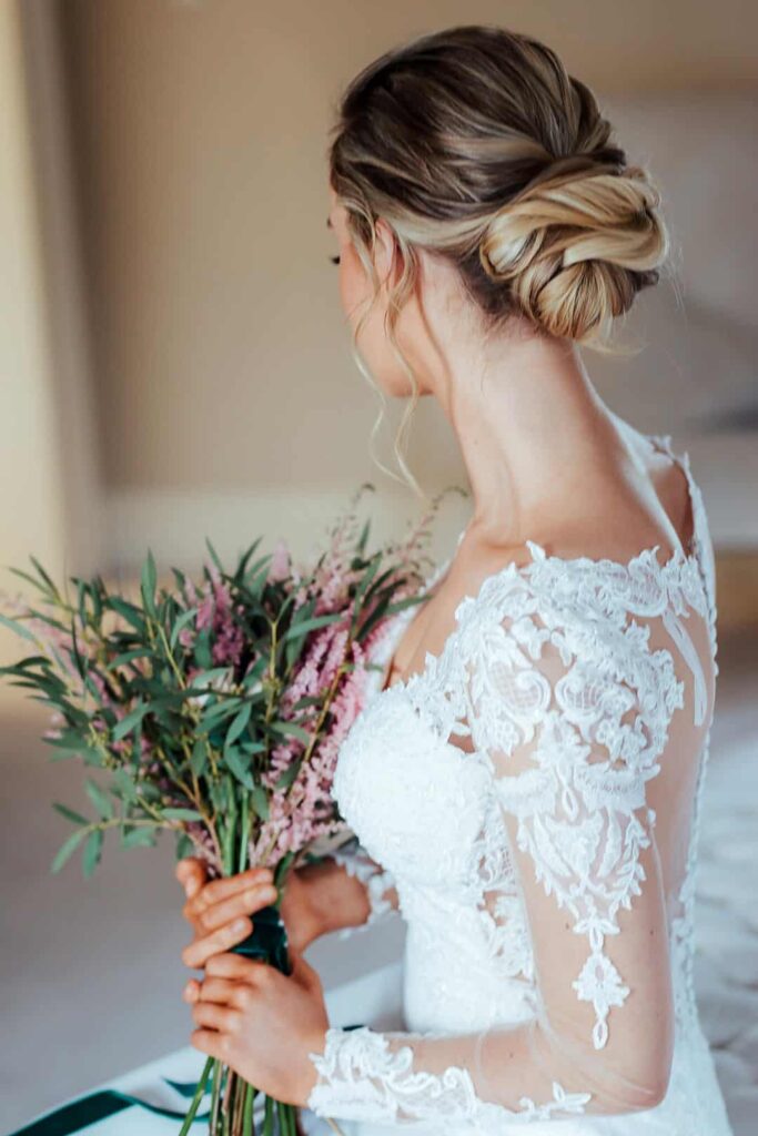 The weather will actually play quite a big part in your decision. A lot of brides I photograph choose to wear their hair down during the summer months but for autumn and winter weddings updos are still more popular. The reasons are pretty obvious: you want your hairstyle to last well into the night, for 8 or maybe 12 hours. You also want it to endure all sorts of conditions, especially in Ireland’s changeable climate. And if you’re worried about rain think wind! Irish wind tends to pick up in no time and change the look of any down-do in a matter of minutes. If you don’t mind a romantic adventurous windswept look, then go for it! If, however, you are after a more refined and elegant look, an upstyle is certainly a safer bet.