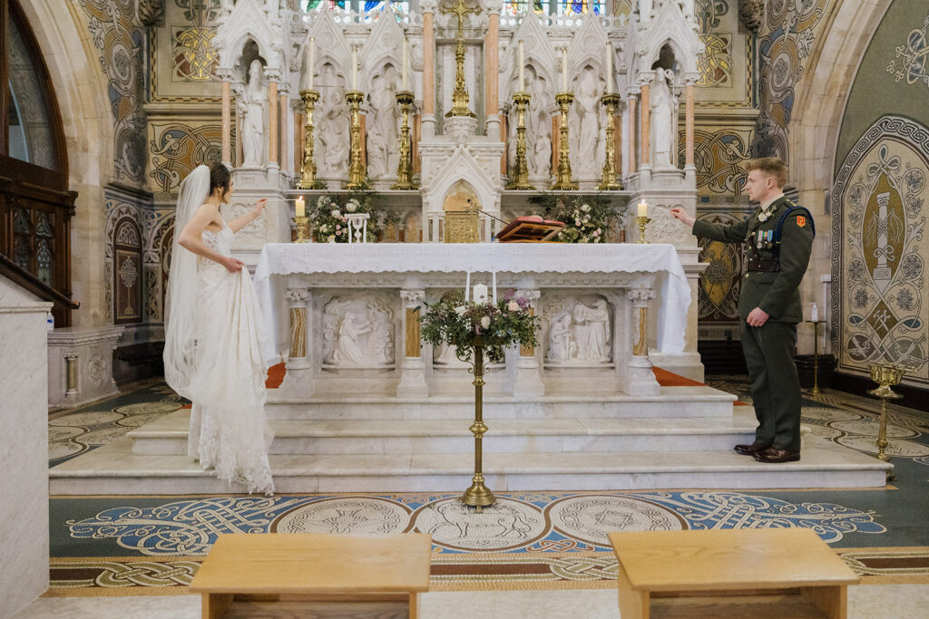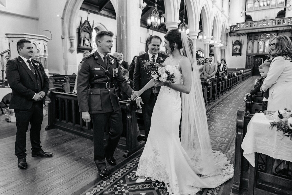 This was one of those wedding days that flowed effortlessly. After a relaxing morning getting ready at the estate, they travelled to the breathtaking St Patrick’s Church in Trim. Of course, Red’s colleagues from the military had to honour the occasion and everyone talked about the guard of honor for the rest of the day!