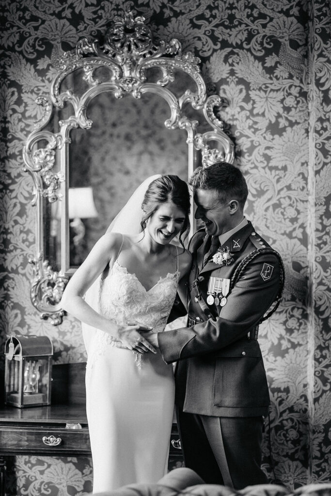 When you serve your country it’s only fitting to have your wedding on its national day! Nicole and Red celebrated in the stunning Boyne Hill House and there wasn’t a single leprechaun in sight – just men in uniforms!